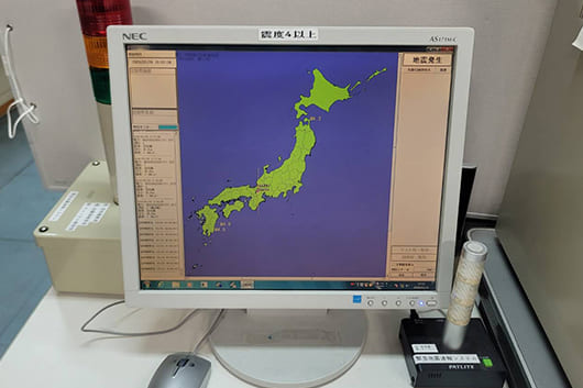 地震速報発報端末を運転室に設置しています(発報後は減速停止措置を実施します)。